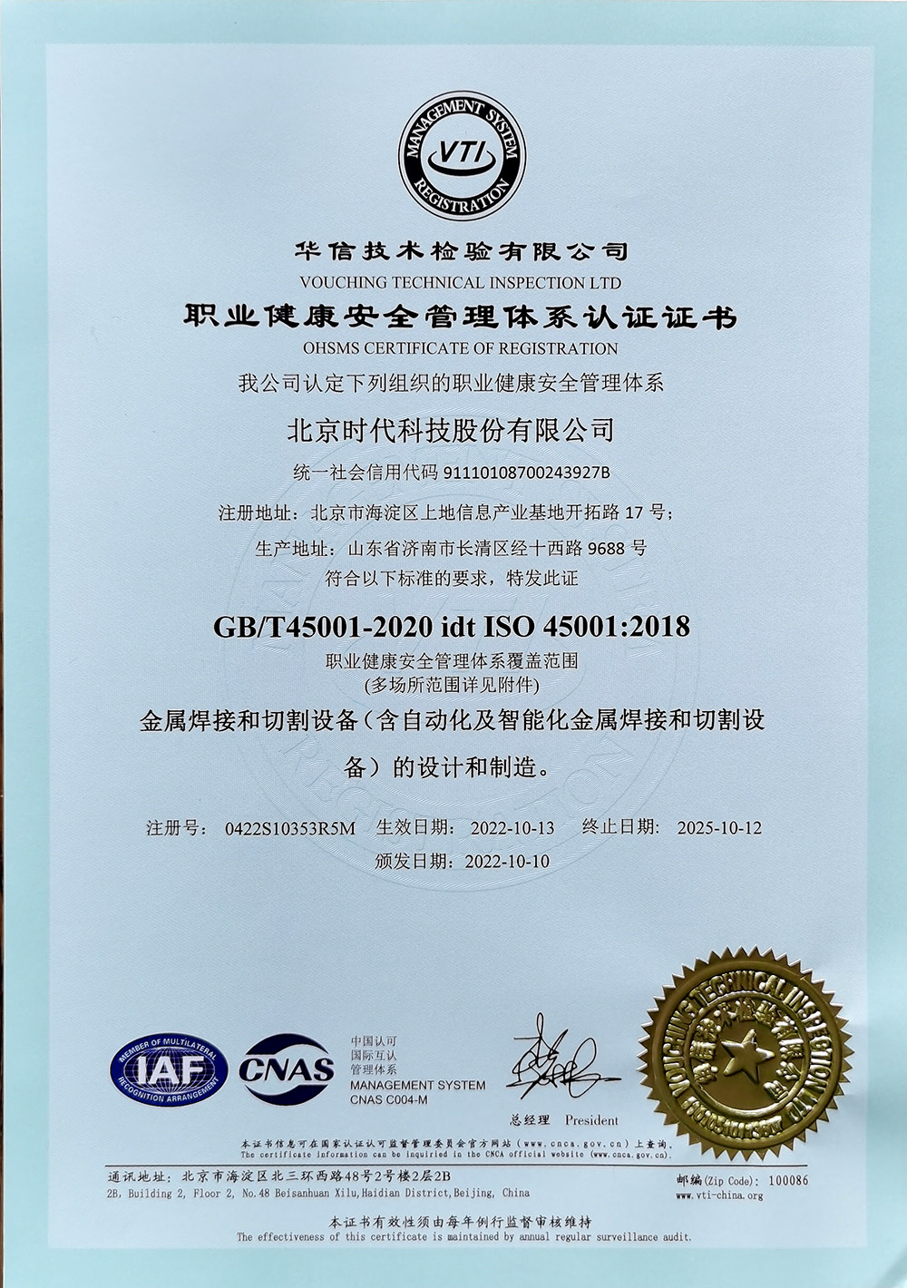 ISO職業(yè)健康安全管理體系認(rèn)證證書(shū)